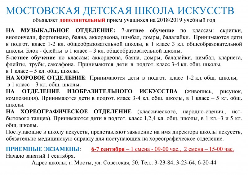 Новости Информация Анонсы ДЕТСКАЯ ШКОЛА ИСКУССТВ ОБЪЯВЛЯЕТ ДОПОЛНИТЕЛЬНЫЙ ПРИЕМ УЧАЩИХСЯ ДЕТСКАЯ ШКОЛА ИСКУССТВ ОБЪЯВЛЯЕТ ДОПОЛНИТЕЛЬНЫЙ ПРИЕМ УЧАЩИХСЯ школа искусств мосты, приём учащихся, мосты, музыкальная школа — 27.08.2018 00:35 Полина Пышинская Комментарии Нет комментариев. Ваш будет первым! Войдите или зарегистрируйтесь чтобы добавлять комментарии