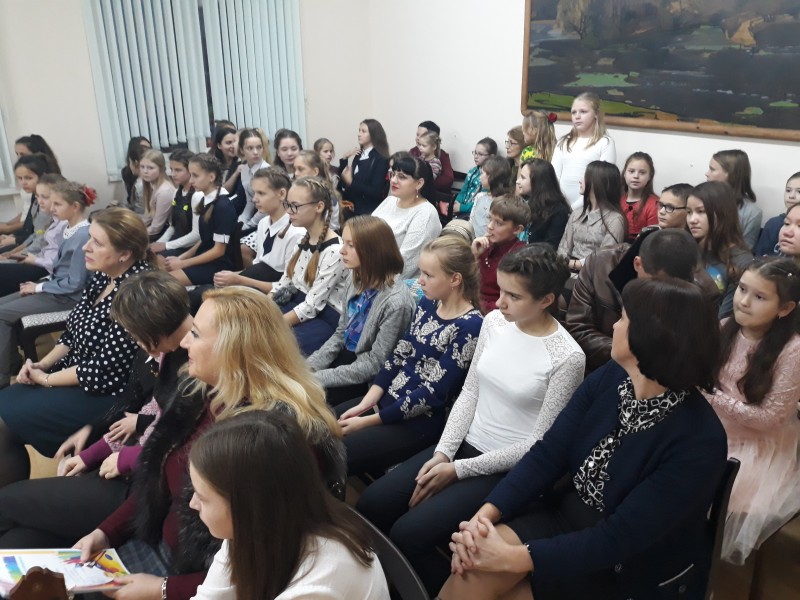 Ведущая вечера, учитель теоретического отделения Сафоник Татьяна Сергеевна, рассказала присутствующим о жизненном и творческом пути «песняроў беларускай зямлі». Исторические факты из жизни «Сыноў Беларусі» с интересом воспринимались слушателями.